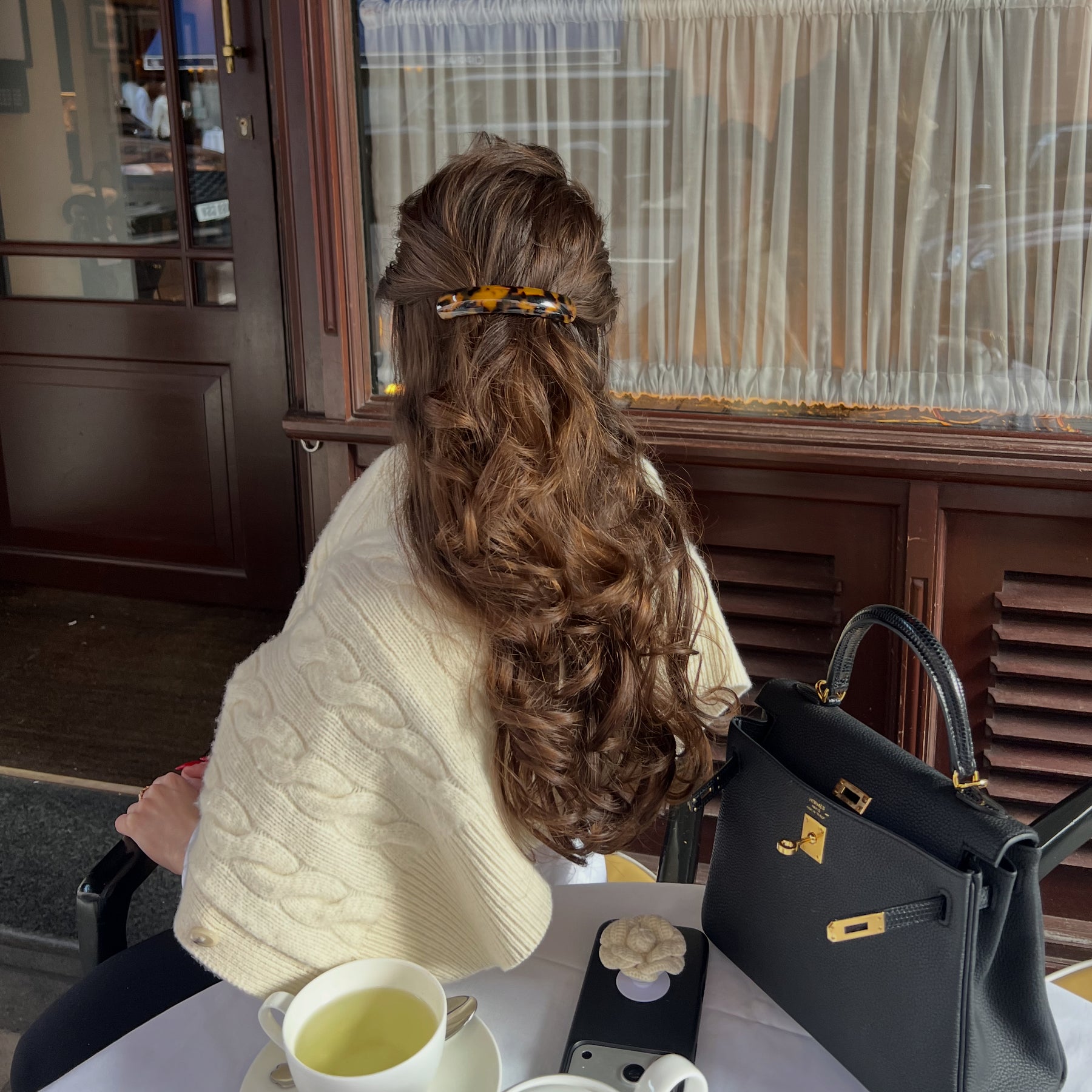 يتميز مشبك الشعر بطبعة صدفة سلحفاة خفيفة لتسريحات شعر أنيقة نصف مرفوعة ونصف منسدلة. هذا المشبك مثالي للشعر الخفيف إلى المتوسط ​​الكثافة.