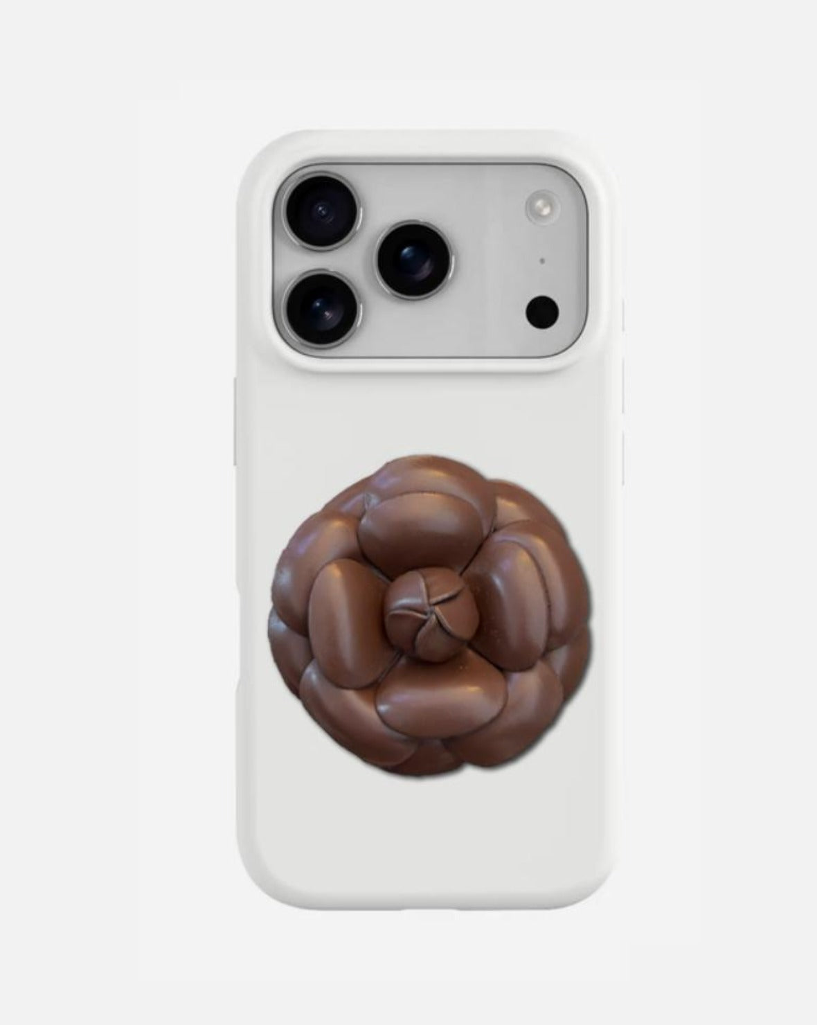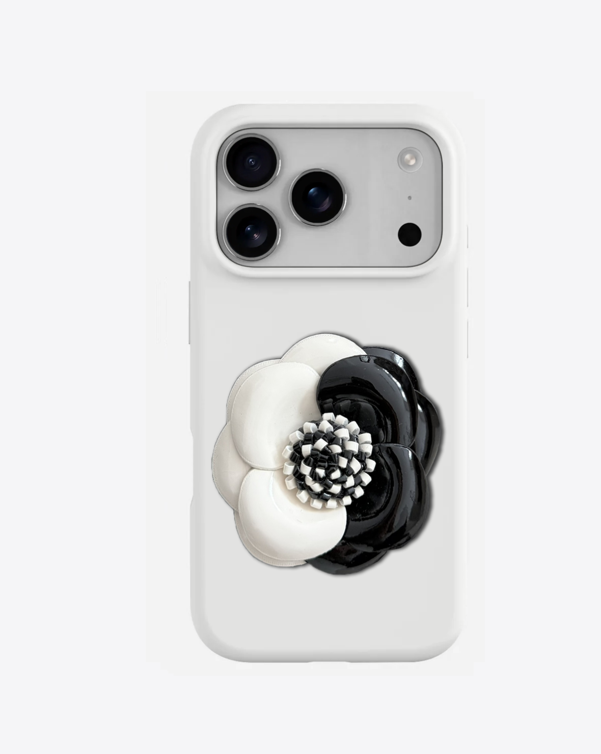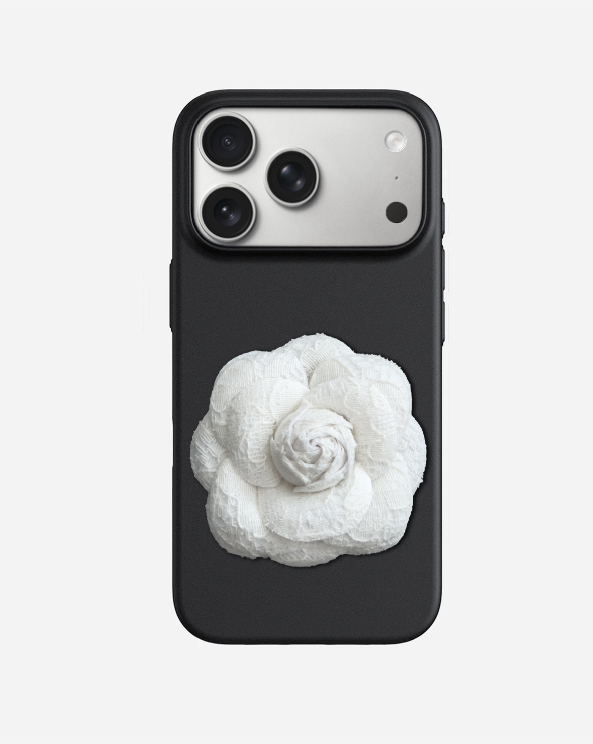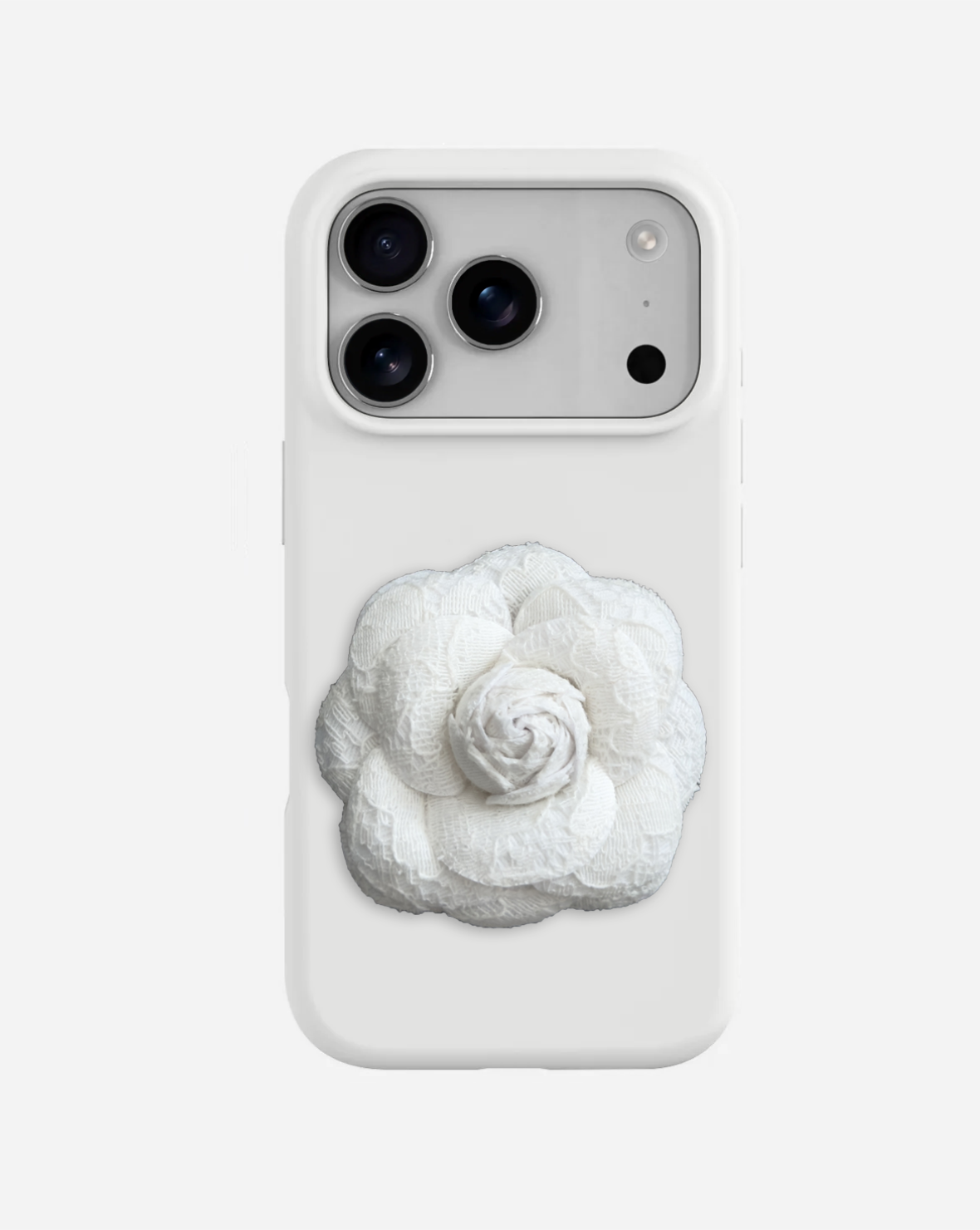 Perlweiße Kamelienhülle für iPhone 16 Pro Max