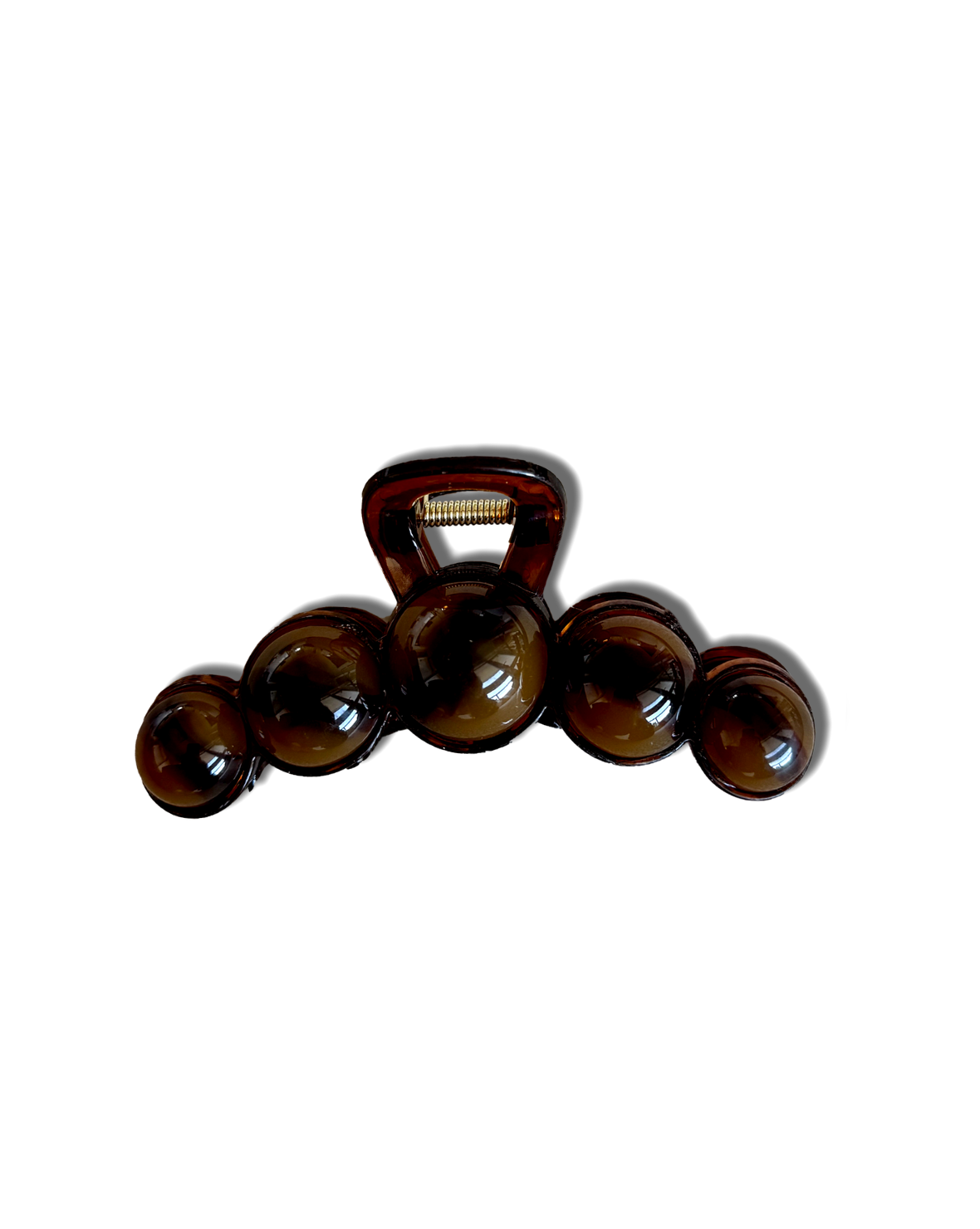 Der Cleo-Clip besteht aus fünf braunen Tigeraugen auf einem braunen, durchscheinenden Clip. Der Clip bietet guten Halt für mittellanges Haar. Die Länge beträgt 11 cm.